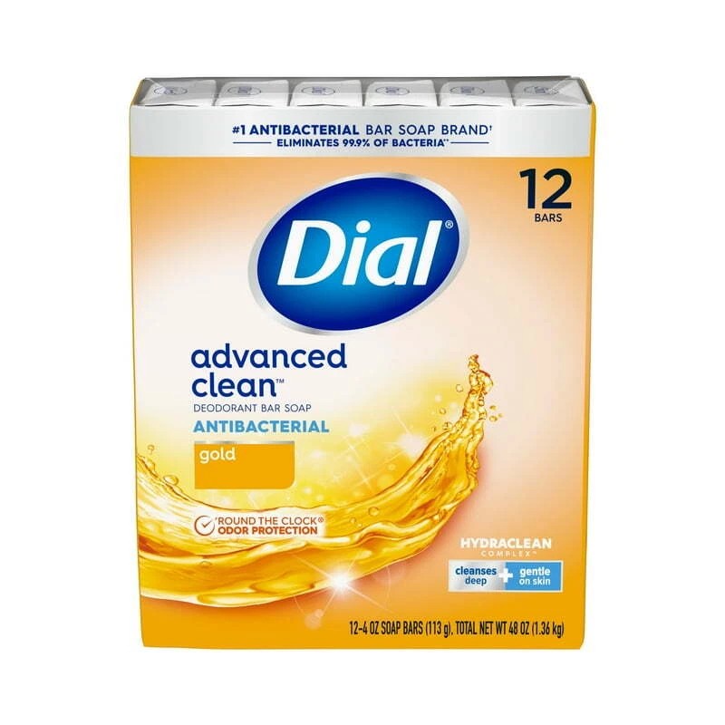 Dial Antibacterial Deodorant Bar Soap, Advanced Clean, Gold, 4 oz, 12 Bars