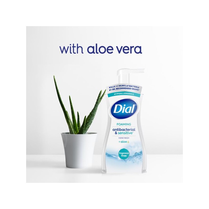 Dial Antibacterial & Sensitive fragrance-free foaming hand wash is hypoallergenic and formulated with aloe. The mild formula kills more than 99.99% of bacteria* while being gentle on skin; leaving it feeling soft, smooth, & healthy. The #1 Doctor recommended antibacterial hand soap brand is dermatologist tested & approved as cruelty free under the Leaping Bunny program. This package contains six bottles of 7.5 fluid ounces of Dial hand soap. *Encountered in household settings