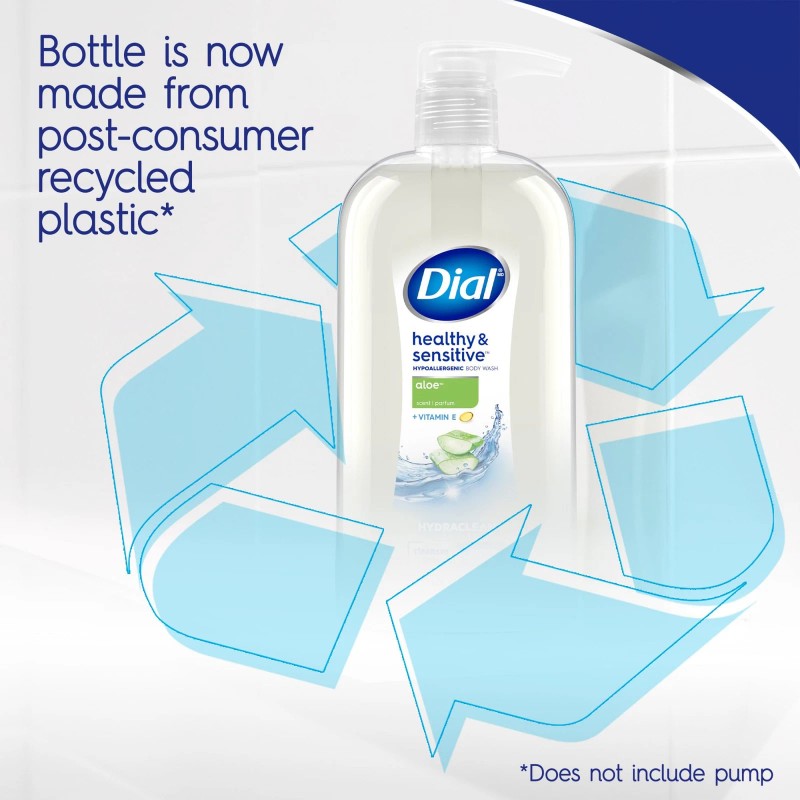 Dial Healthy & Sensitive Body Wash, Deeply Cleanses to Leave Skin Feeling Fresh & Healthy, Balanced pH for your skin, With Hydraclean Complex, Hypoallergenic, Aloe Scent, 23 Fl Oz (Pack of 3)