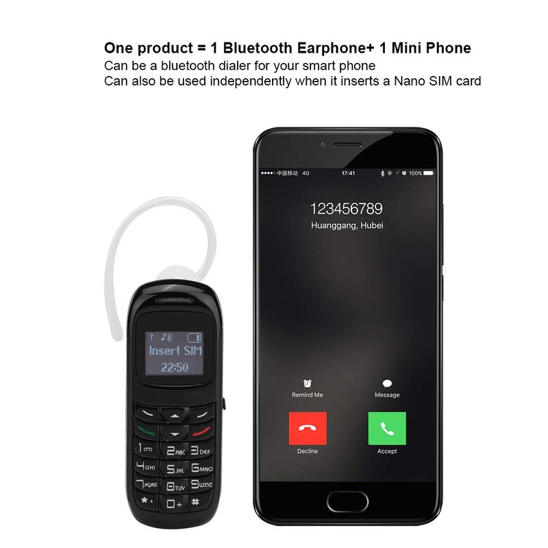 Dialer, Mini Phone Sim, Portable Phone, Small Size Dialer Headset Kids Use Black