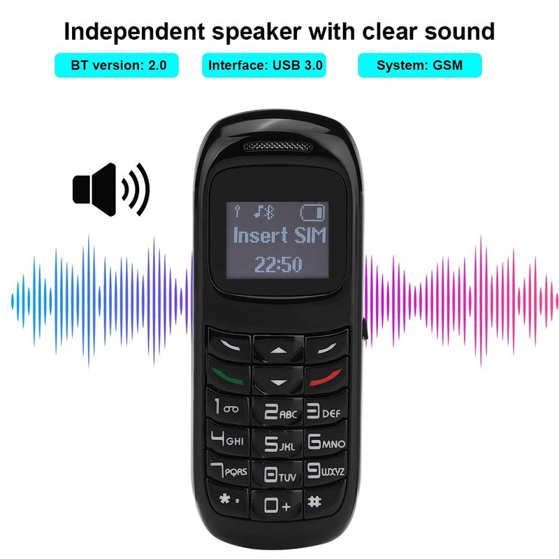 Dialer, Mini Phone SIM, Portable Phone, Small Size Dialer Headset Kids Use(Bl...