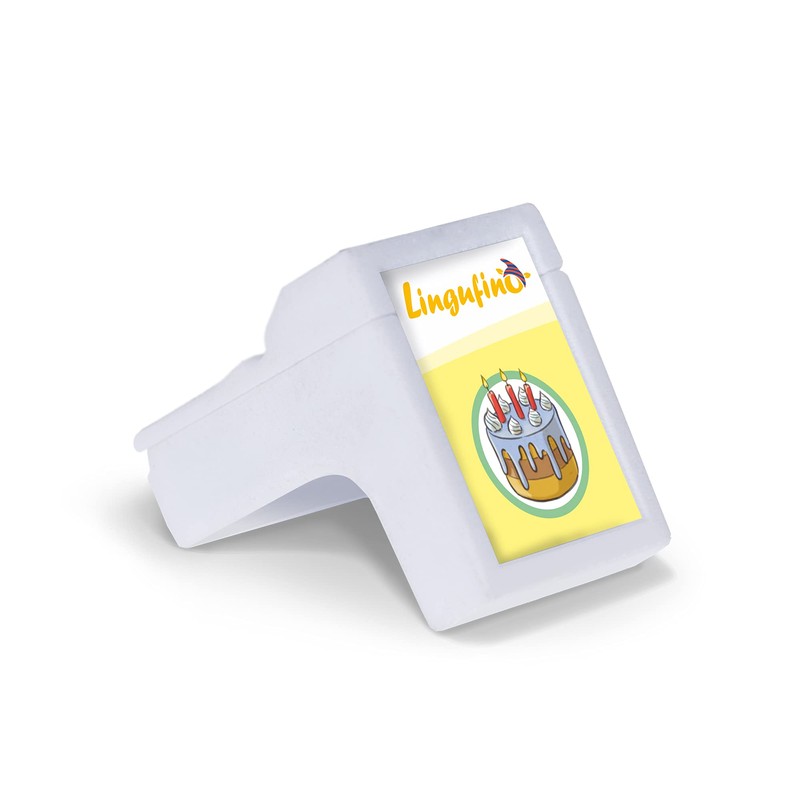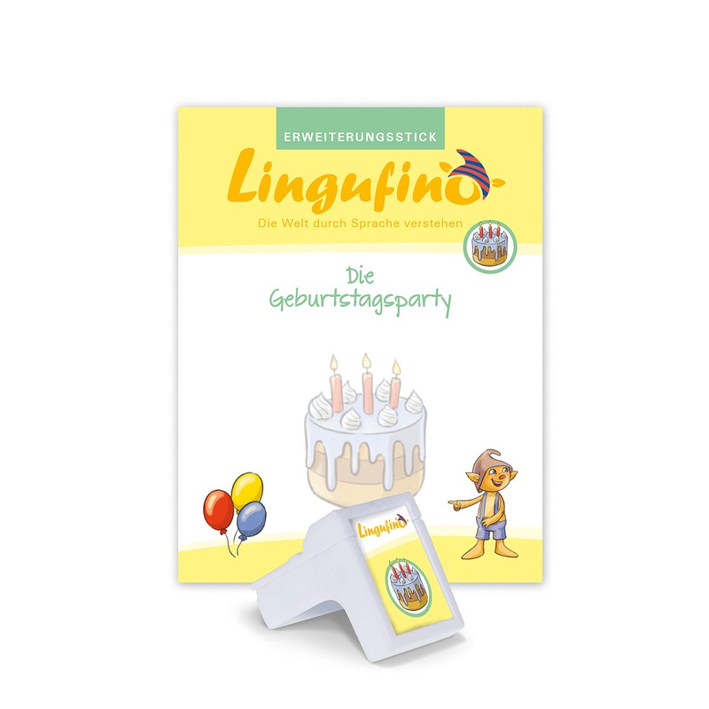 Today is a special day. Lingufino's friend Tom has a birthday and Lingufino can accompany him all day. But what is going on - something is wrong, because no one seems to remember Tom's birthday. Lingufino cheers up his friend with fun games to experience a big surprise later with him. This expansion kit contains the Birthday Party dialogue module. No book is included in this expansion set. The story has been designed so that this is not necessary. The dialogue module is inserted into the electronic unit and it can be played immediately. The expansion set requires the Lingufino plush toy including electronic unit from the basic set, junior set or the English starter set.