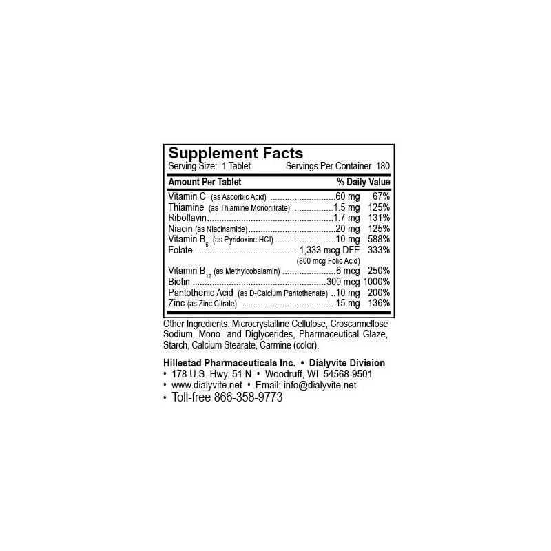 Dialyvite 800 with Zinc 15 mg. Value Bottle - 180 Tablets