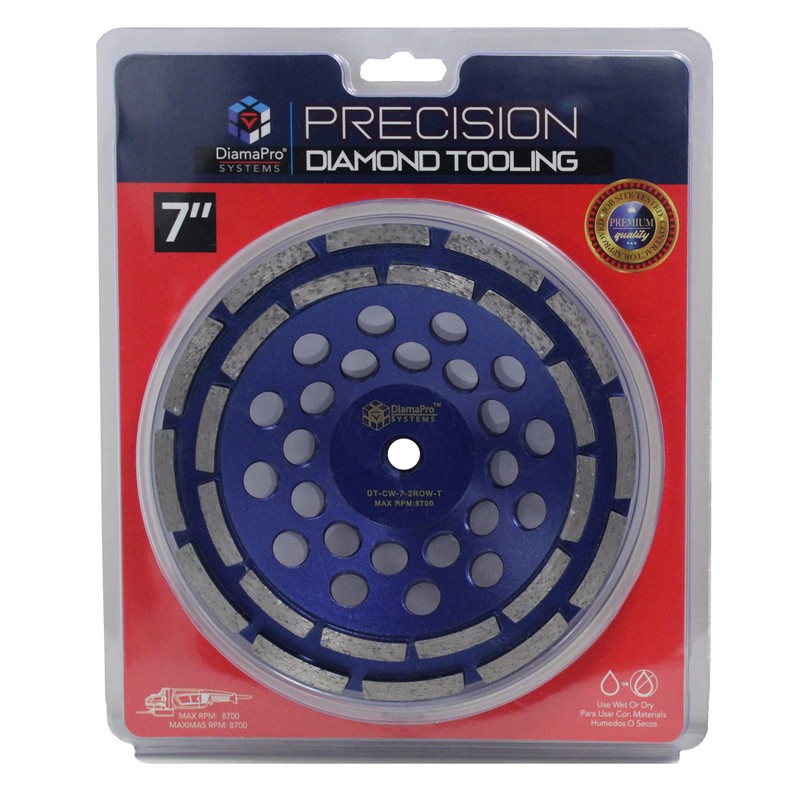 DiamaPro Systems DT-CW-7-2ROW-T Threaded 7 Inch Double Row Diamond Abrasive Concrete Grinding Cup Wheel Tool for Drains, Preparation, Coating Removal