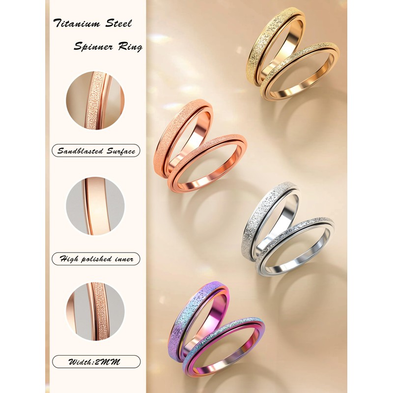 - FIDGET RINGS WOMEN: Sandblasted spinner ring, ideal for relieving anxiety and tension when on work, meetings, parties, dates, and other occasions, let you relax slowly and think calmly; Anxiety rings spin smoothly and makes no noise, very popular with someone looking for an item to relieve anxiety and correct bad habits like picking nails; Exquisite and affordable, worth owning