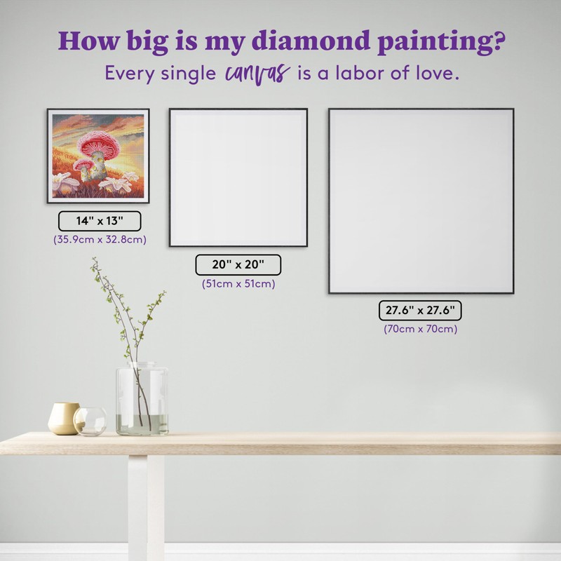 - OUR UNIQUE CANVAS PROCESS: We offer premium patented canvases with licensed art and the shiniest diamonds. Each canvas is hand charted for optimum clarity. Gift this gorgeous mushroom diamond art painting by artist Nathanael Mortensen to friends who love nature scenery or display it on your own wall!