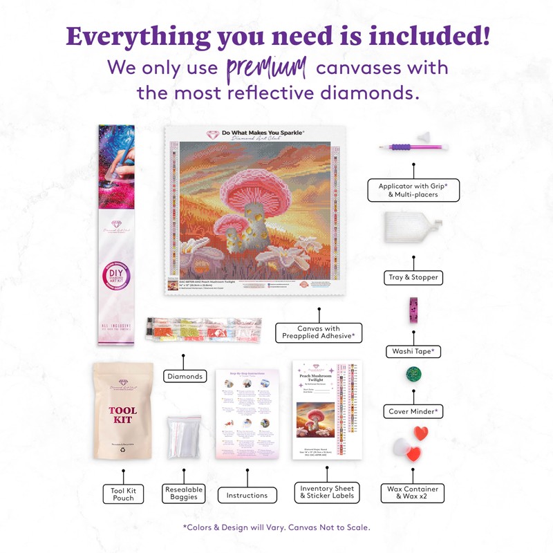 DIAMOND ART CLUB Peach Mushroom Twilight Diamond Painting Kit, Fun DIY Crafts for Adults, Round Diamond Art Canvas for Beginners, 14" x 13" (35.9 x 32.8 cm)