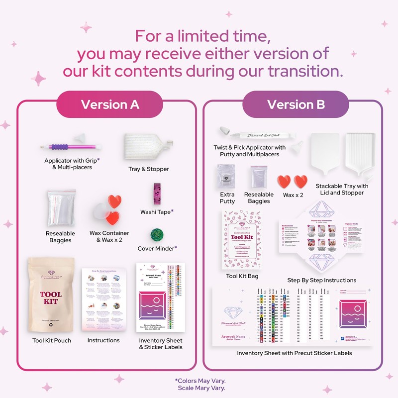 - INCLUDED: A 20" x 13" (50.7 x 32.8cm) full-drill canvas, round diamonds in 31 colors with 3 aurora borealis diamonds and 2 fairy dust diamonds, 1 applicator with grip, 2 multi-placers, 1 cover minder, 1 tray with stopper, 1 wax container, 2 wax pads, washi tape, resealable baggies, sticker labels, and instructions. Diamond count: 21,177.