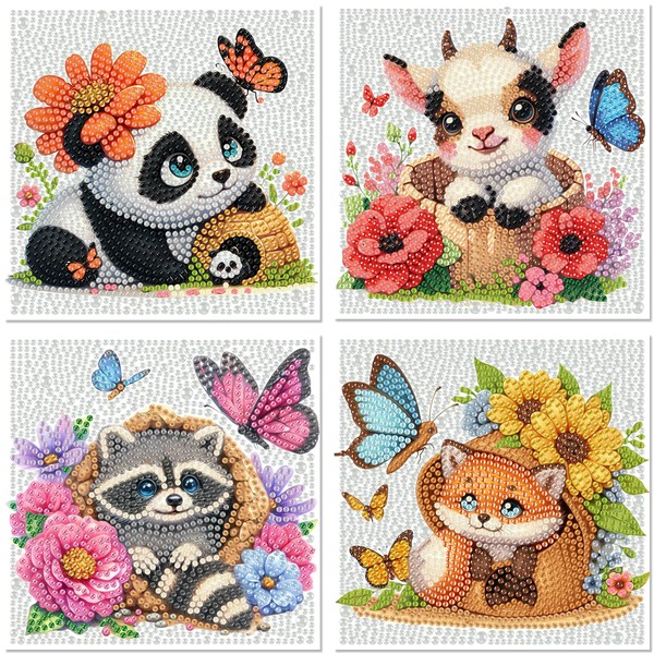 - 【Diamond Art Kits for Kids】 Package includes 4 pre-printed canvas, 4 stylus, 4 tray, 4 wax square, 1000+ colorful gems. 4 pack diamond art tools can allow several kids to DIY their art projects together