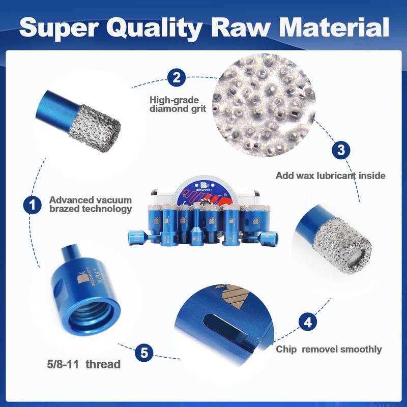 Diamond Core Drill Bit Set - for Porcelain Tile Ceramic Marble Granite Drilling,BRSCHNITT 1/4" 5/16" 3/8" 4/5" 1" 1-3/8" 1-1/2" 2" 2-1/2" Vacuum Brazed Diamond Hole Saw with 5/8-11 Thread