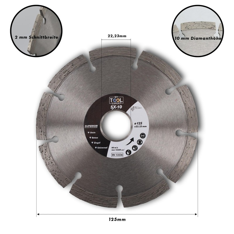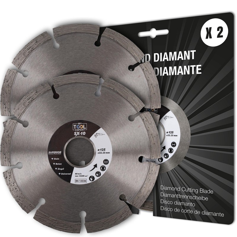 - Precise cuts with 115 mm diamond disc - The 2 x 125 mm diamond disc has been specially developed for precise and clean cuts in concrete, natural stone, brick, masonry and paving stones. Thanks to the high-quality 10 mm block segments, it allows an even cutting performance and a long service life.