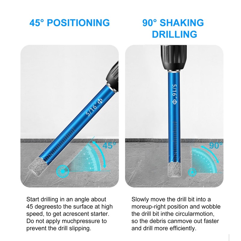 - Performance Advantages:high-quality diamond particles are used, and through advanced coating technology, they are firmly attached to the surface of the drill bit to enhance hardness and wear resistance. Emphasize that it can easily penetrate hard materials such as ceramics, glass, and granite.