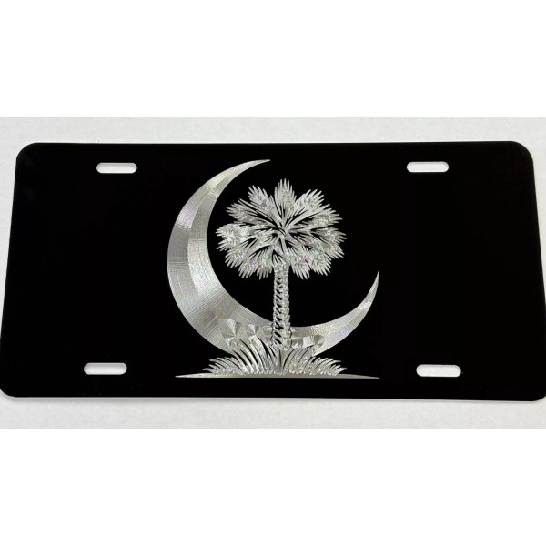 Diamond Etched Products Engraved SC Palmetto Palm Tree Moon Car Tag Diamond Etched Front License Plate