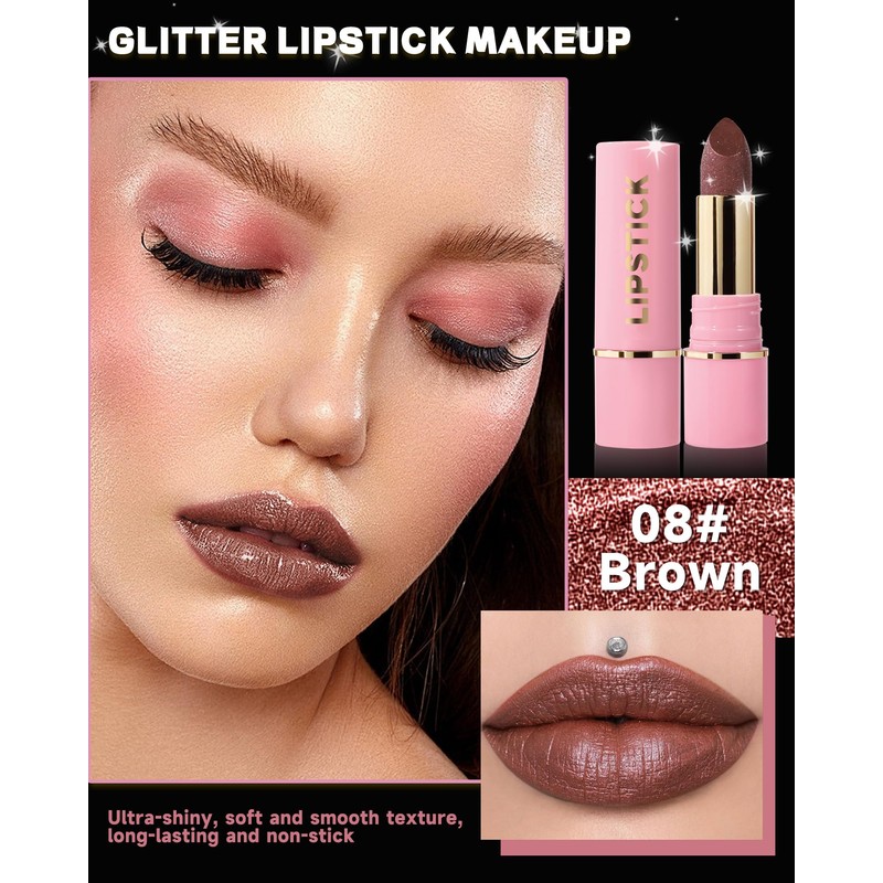 - Ideal Gift - The flashing lip gloss glittering sparkling lipstick. As a perfect gift for lovers, family, and friends on Halloween, Thanksgiving, Christmas, Valentine's Day and other holidays! The most popular color of full-color lipstick is glitter lipstick for women. Bright wine red and attractive black lipstick are a good partner with banquet dresses.