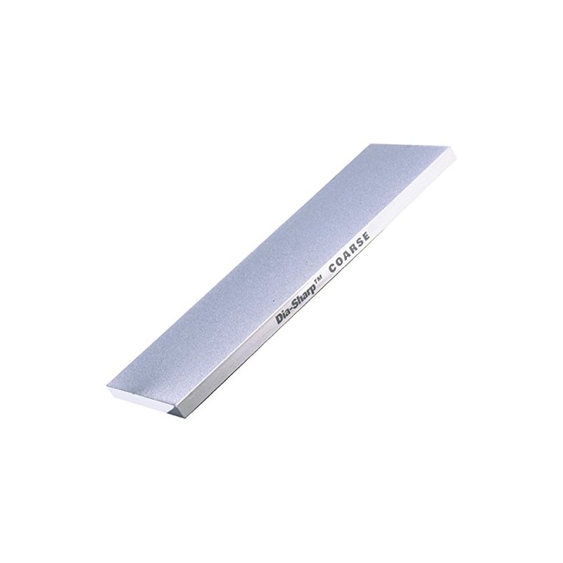 Expect cutting edge performance with DMT 's Dia-Sharp 6-Inch continuous diamond sharpening bench stone. For knives, blades and fine tools. Coarse diamond (45 micron / 325 mesh) to quickly restore a neglected edge. Size: 6-Inch by 2-Inch by 1/4" Includes non-skid rubber feet. Diamond grade clearly marked on side of stone. Sharpening with diamonds is fast and easy. No messy oils needed--sharpen dry or with water. Durable construction will provide years of consistent performance and reliable service For proper tool maintenance, woodworkers, chefs and other professionals rely on the superior quality and versatility of DMT products. Made in USA.