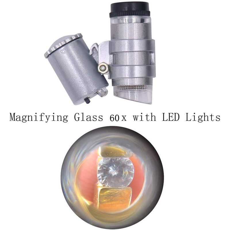 - Portable Diamond Tester Pen and 60X LED Lighted Loupe each comes with its own convenient carrying cases. Both items are small and can fit into any purse or backpack. Diamond Tester Pen and 60X LED Lighted Loupe combo and 200g/0.01g Mini Jewelry Scal is a must have tool kit when you are going to a garage sale, flea market, swap meet, etc. Alternatively, its also a great tool to have when testing your own jewelry.