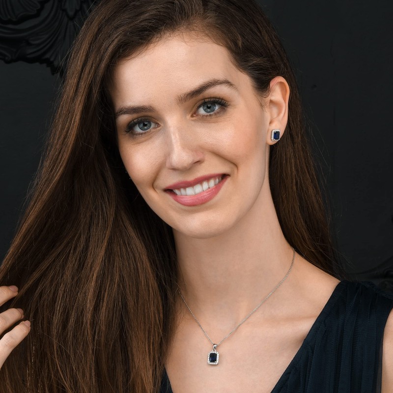 - AAA GRADE CUBIC ZIRCONIA STONES - 925 solid sterling silver pendant necklace for women, the 10mm x 12.5mm rectangle pendant is set with a 7mm x 9mm emarald cut sapphire blue cubic zirconia stone and 1.5mm small flawless bright white cubic zirconia stones that sparkle beautifully to look like real gemstones.