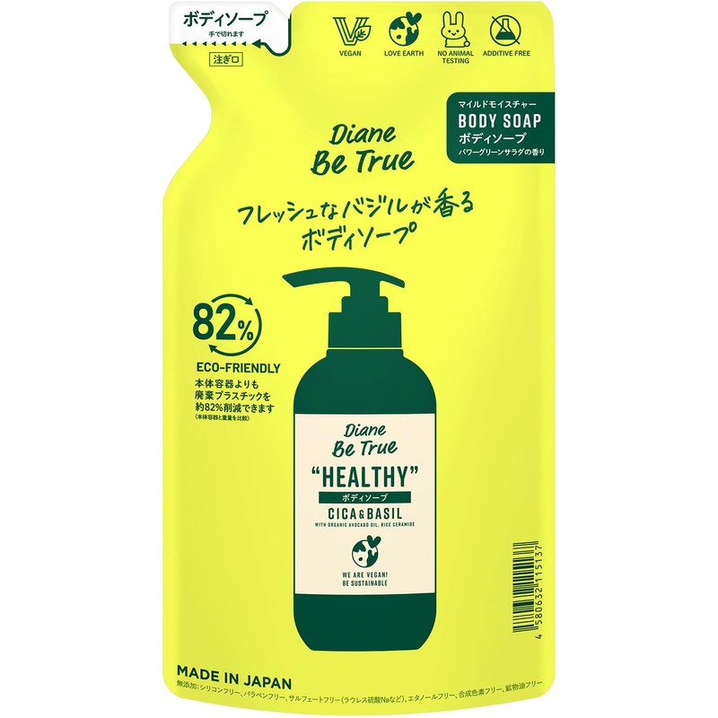 Diane Beetle Body Soap, Mild Moisture, Rose & Basil Scent, Diane Beetle True, Refill, 11.5 fl oz (340 ml), Additive-Free