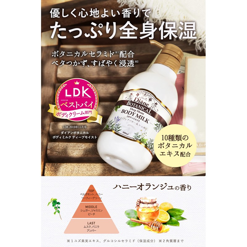 Diane Botanical Deep Moist Body Milk, Large Size, Honey Orange Scent, 16.9 fl oz (500 ml)