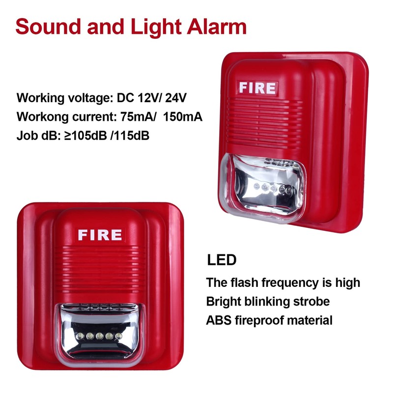 - 【FEATRE】: Sound and Light Fire Alarm, 9 to 24V DC working voltage, Non UL Listed.