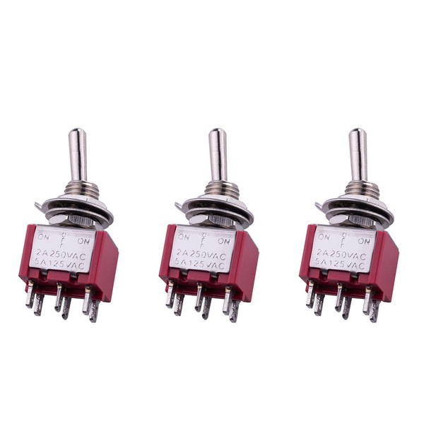 DIAO79NI 3 Way SPDT Guitar Mini Toggle Switch 6 Pin ON/Off/ON Selector, Red (Set Of 3)