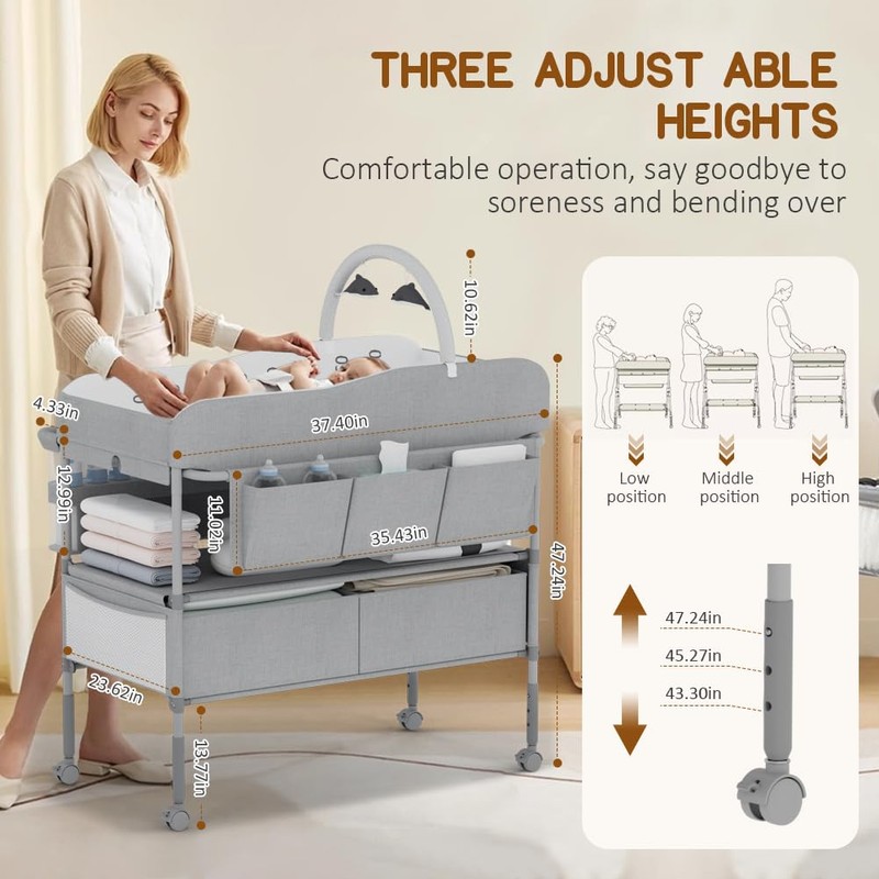 - 😄[UPGRADED 3 HEIGHT CHANGING STATION] We are well aware that taking care of babies is such a huge and complex task, and our portable diaper changing station provides 3 perfect positions for parents of different heights. It will provide great help for changing diapers or caring for babies, and you will never bend or kneel. From now on, say goodbye to soreness and bending over!