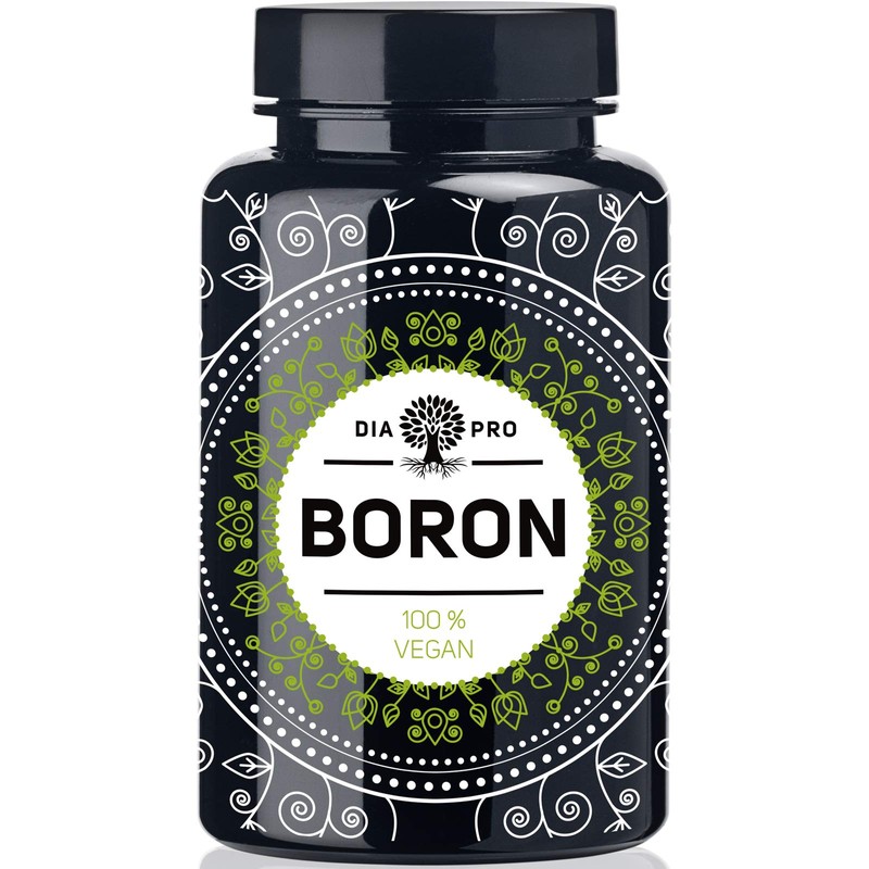 - Contents: A packaging unit of DiaPro Boron high dose contains 365 vegan tablets, each with 3 milligrams of boron made of sodium borate. With a daily dose of one tablet, the amount of 365 tablets is sufficient for a whole year. As a pressing agents, high-quality vegetable cellulose is used. Thus the dietary supplement DiaPro Boron 3 mg is highly dosed as a product for vegetarians and vegans.