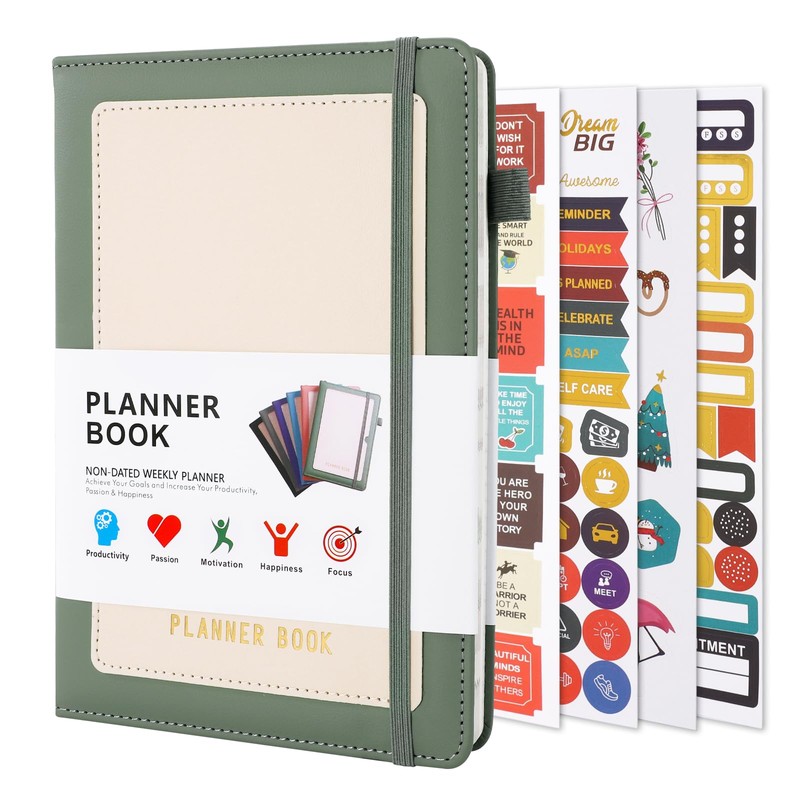 - Motivational Stickers The planner notebook comes with 4 different kinds of motivational stickers, beautiful and exquisite stickers can help you fulfill your plan better. While enriching the content of your notes, they can also better motivate you to achieve your goals and cultivate self-discipline happier.