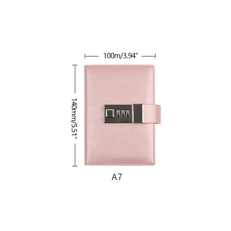 Diary with Lock, PU Leather Password Notebook A7 Writing Notebook Secret Notepad 96 Sheets for Office, School and Home (Pink)
