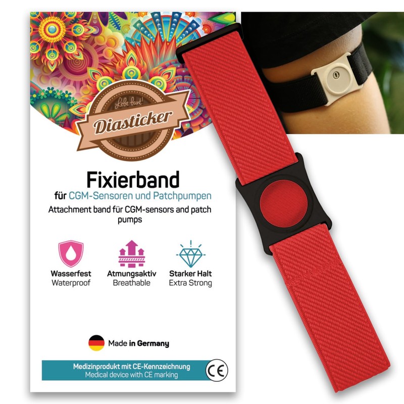 Diasticker® Freestyle Libre 3 – Fixation Strap | Flexible – Waterproof – Strong Hold | Sensor Protection, Fixation for Freestyle Libre Sensor | Holder: Black (Medium: 25-35 cm, Red)