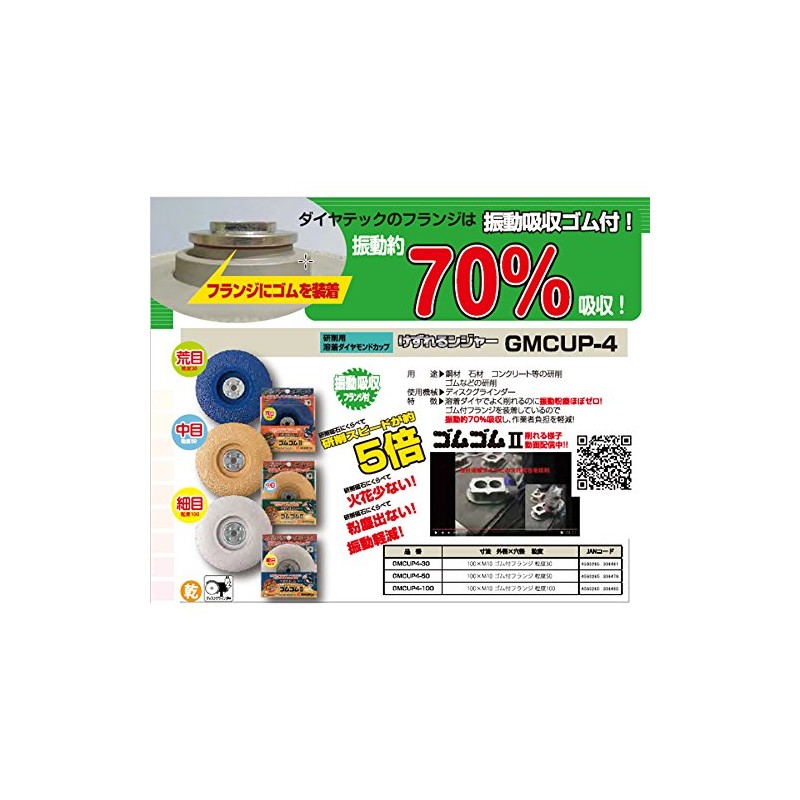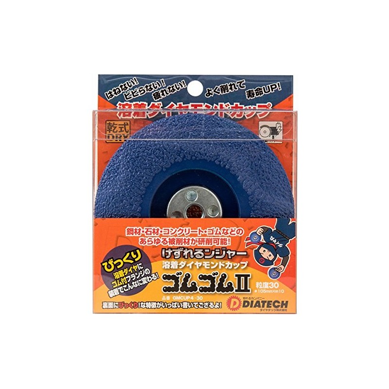 - Dry Fused Diamond Cups Can grind all kinds of material such as steel, stone, concrete, rubber, etc. Grit size: 1.2 inches (30 mm) / 4.1 inches (105 mm) x 10