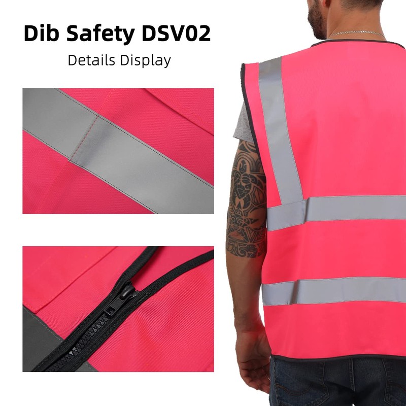 Dib Safety Reflective Vest High Visibility with Pockets and Zipper, Pink XS