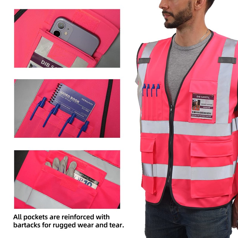 • ENHANCED VISIBILITY: Pink solid fabric and quality ANSI compliant reflective tape