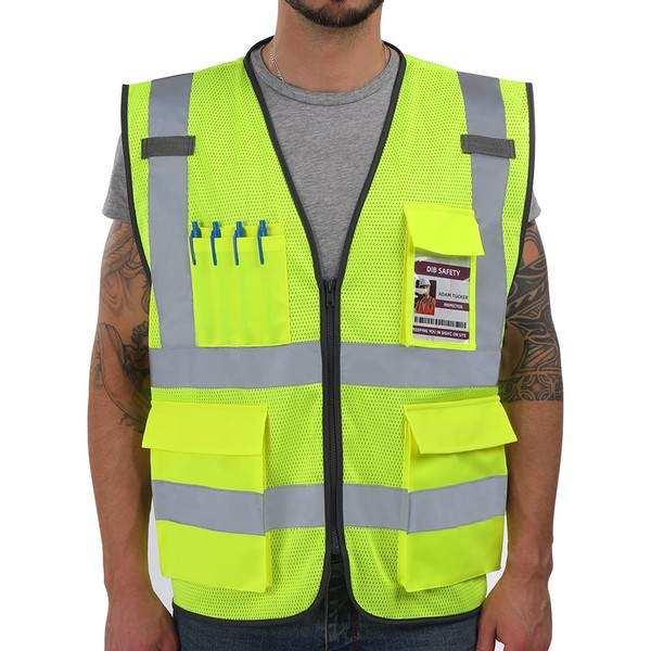 Dib Safety Reflective Vest Mesh, High Visibility Vest with Pockets and Zipper, Construction Work Vest ANSI Class 2, Yellow Mesh M