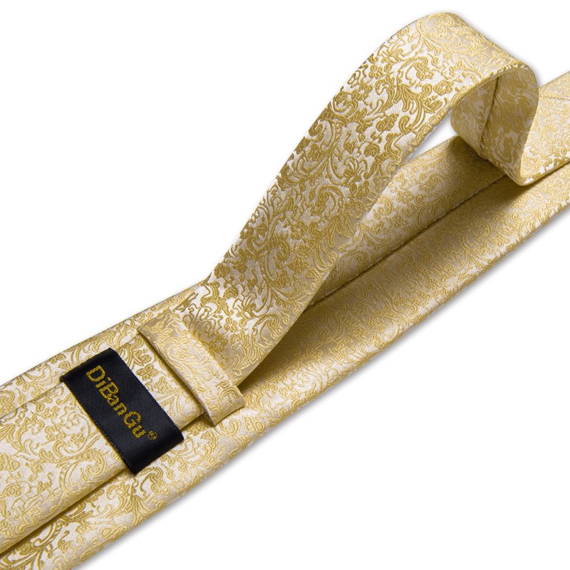 DiBanGu Gold Yellow Floral Tie for Men Silk Paisley Necktie Pocket Square Cufflinks Set