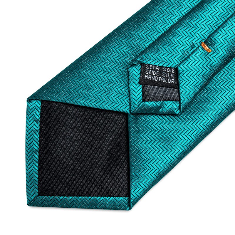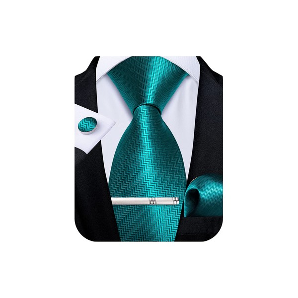 DiBanGu Men's Silk Necktie Solid Plain Tie and Pocket Square Cufflink Set Formal Business Wedding, Verde azulado (Solid Teal), Talla Ășnica