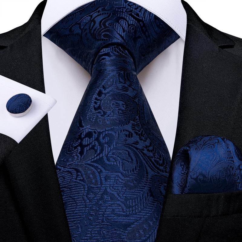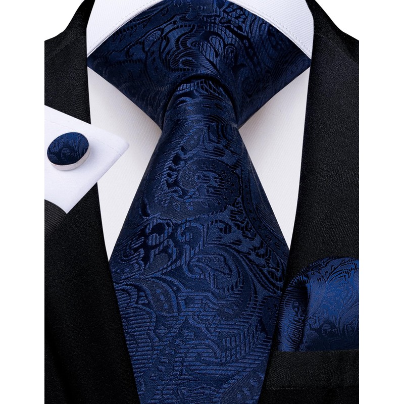 DiBanGu Navy Blue Ties for Men Classic Paisley Tie and Pocket Square Formal Necktie Handkerchief Cufflinks Silk Paisley Tie Set Wedding Business