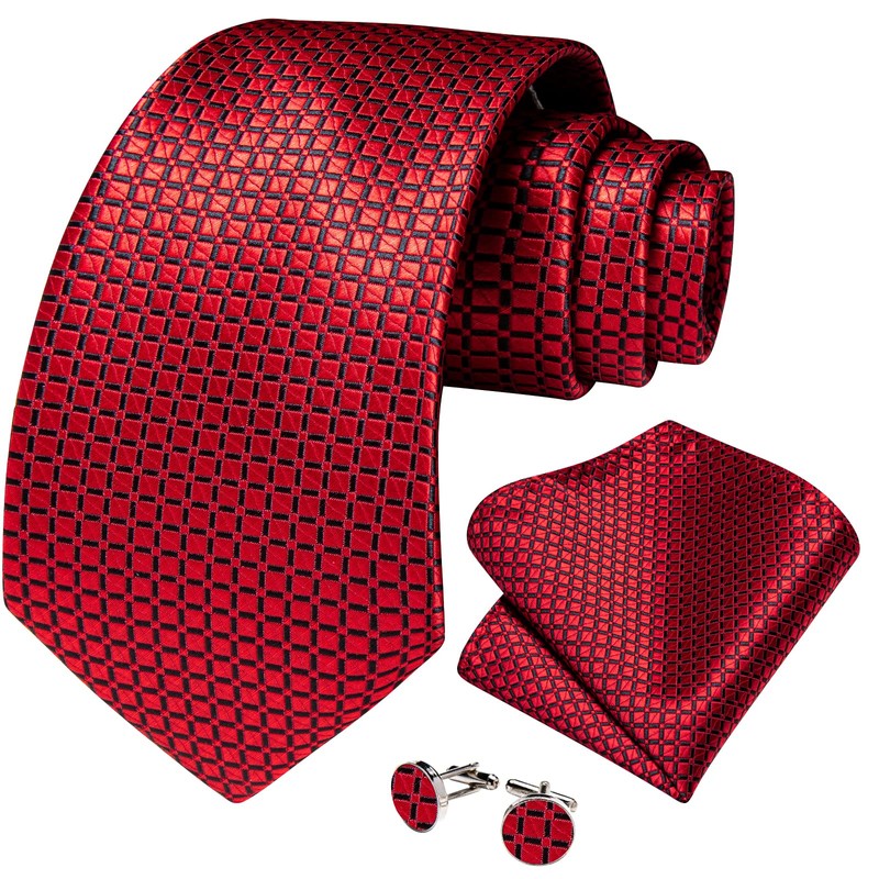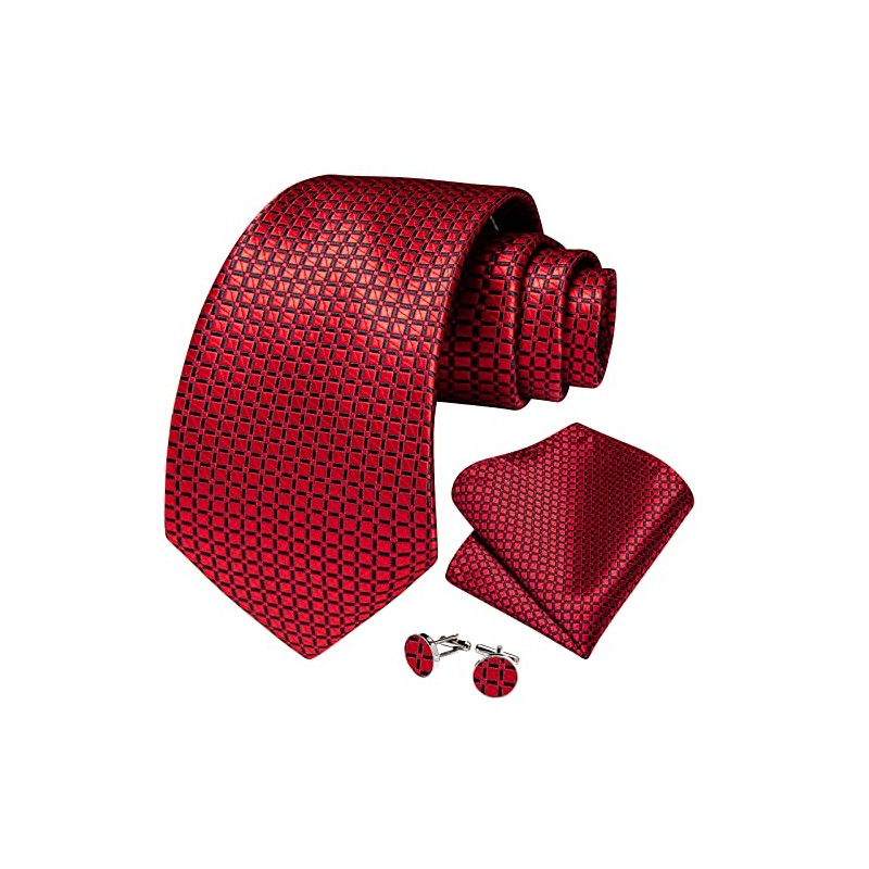 - 🎁【Gift Tie Set】Silk Extra Long Red Plaid Necktie+Woven Pocket Square+Cufflinks+Gift box.It's Proper gift for birthday,Father's Day,Christmas Day,Valentine's Day,Thanksgiving Day,Anniversary ect