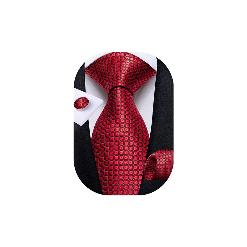 DiBanGu Red Plaid Ties for Men Classic Extra Long Solid Necktie and Pocket Square Cufflinks Set Formal Silk Wedding Tie