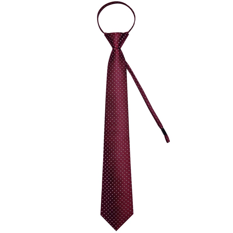 DiBanGu Silk Zipper Ties for Men,Paisley Solid Plaid Pre-tied Tie and Pocket Square Cufflinks Set Formal Adjustable Necktie, Burgundy Red