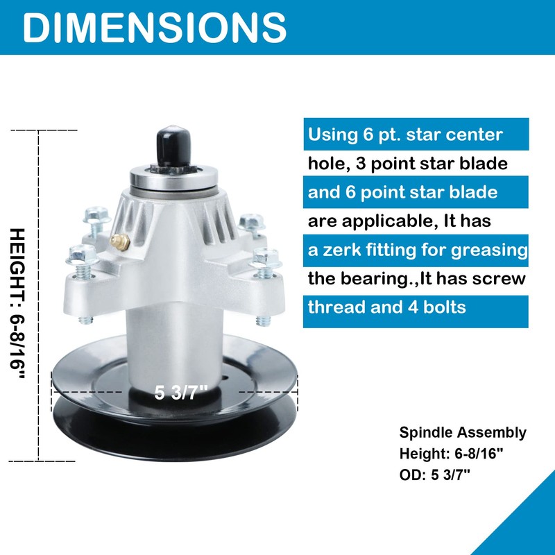 - Spindle Specs:Height 6 1/3" OD of Pulley 5 3/7"