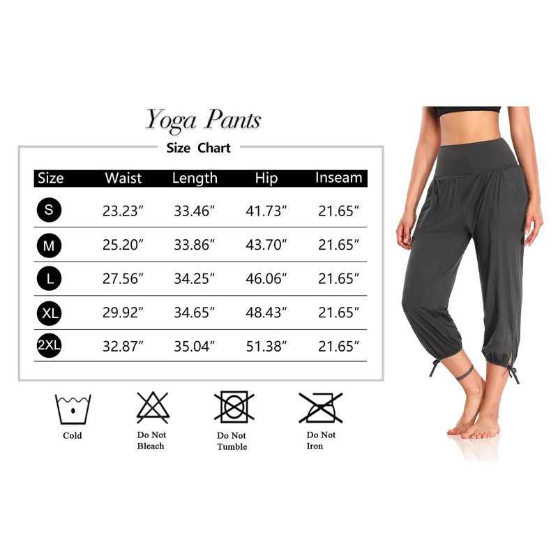 - Capris with Pockets: Loose yoga capris pants with side pockets for convenient on-the-go storage while running or jogging around town. Pull on capris for women, casual capris, harem pants for women