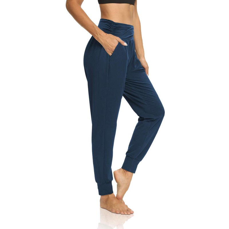 - Cross & Elastic Waistband: DIBAOLONG womens yoga joggers featured in a relaxed fitting, slouchy silhouette with V cross drape-shaping details and a stretch high-rise waistband. Yoga joggers for women, soft and comfy sweatpants for women, joggers with pockets, women workout sweatpants, womens sweatpants capri, sweat pants w/pockets