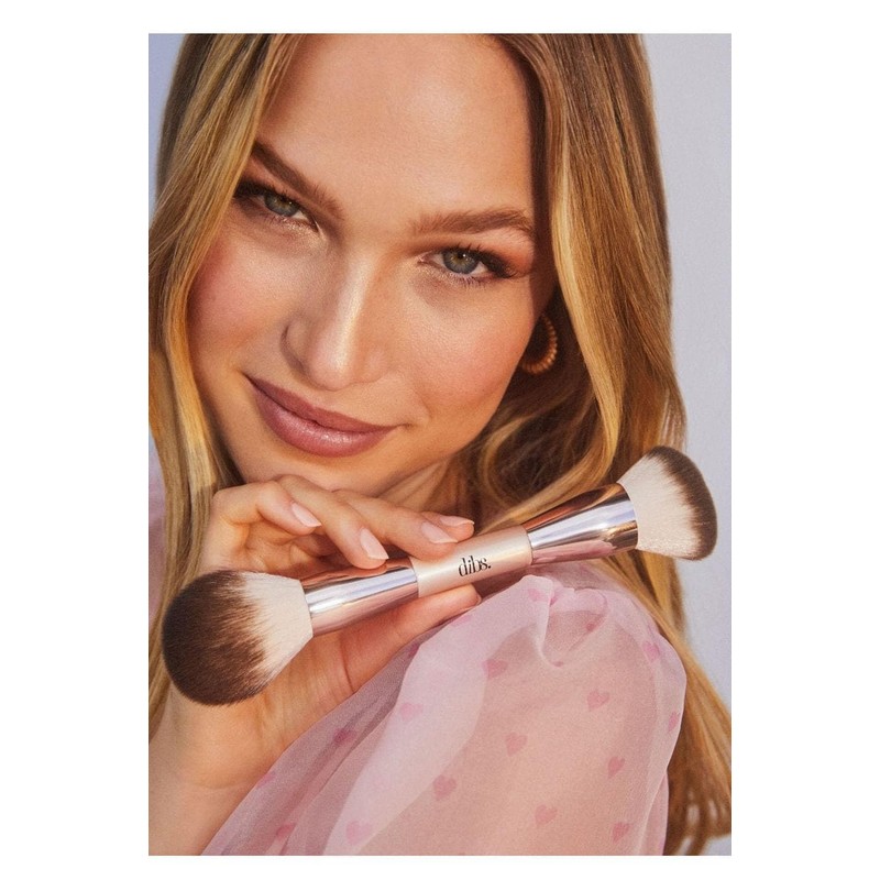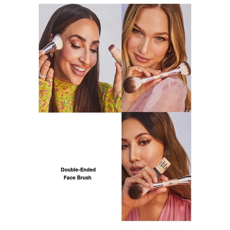 DIBS Beauty Duo Brush Face - Double-Ended Face Brush for Setting Powder, Highlighting
