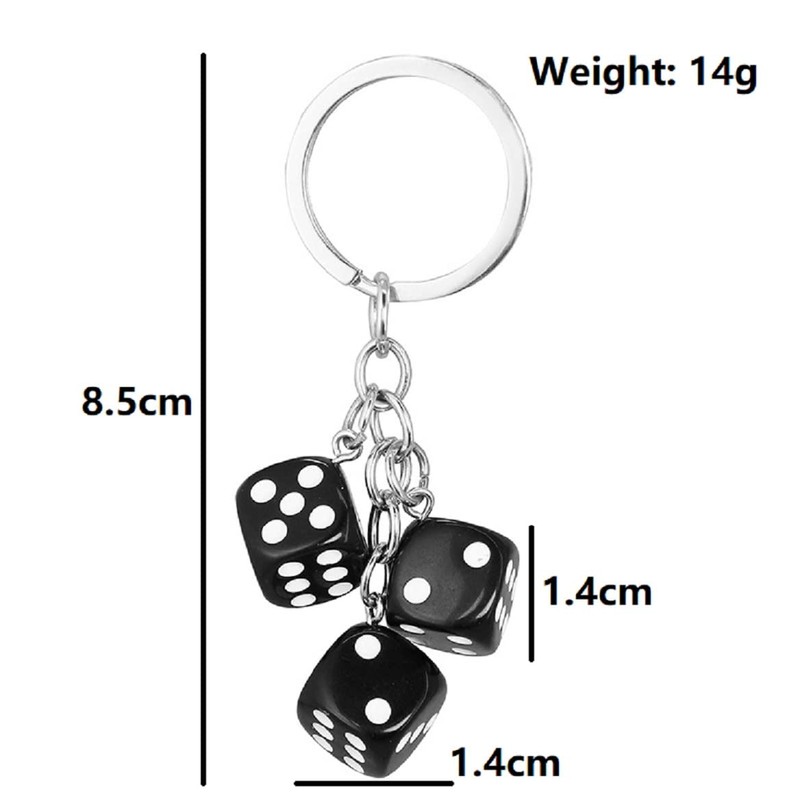 Size: The total length with dice key ring is about 8.5cm long. The pendant is about 1.4cm*1.4cm. The lucky dice key chain is lightweight with a net weight of 14g.