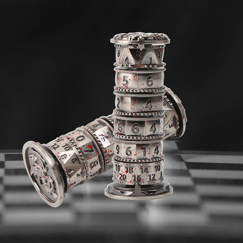 diceevil Dice Tower Spinner 7 in 1 Roulette Dice Metal D4 D6 D8 D10 D12 D20 D% for DND RPG Role Playing Games