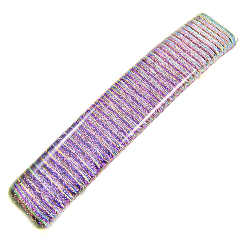Dichroic Glass Hair Barrette - Large 3.5" / 90mm - Pastel Pink Soft Rose Pink Carnation Silvery with Blue Green Accents Striped Reed Lines Slide Clip Hair Accessories