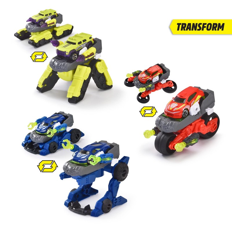 Dickie Toys Transformer Vehicles Set of 3 (12 cm each) – 2 in 1 Robot Cars for Children from 3 Years Including Removable Toy Cars (7.5 cm), Toy Vehicle with Cool Functions