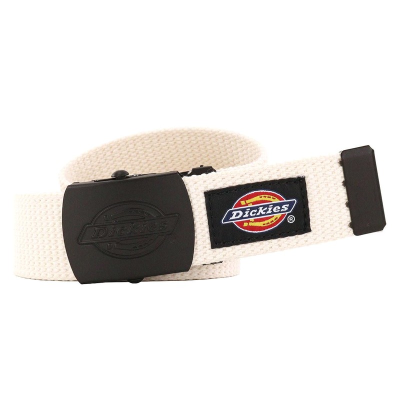 Dickies GI Belt 32mm Wide Double Logo Black Buckle Exclusive DS0112ZN Cotton Blend Sash (16), Off-White
