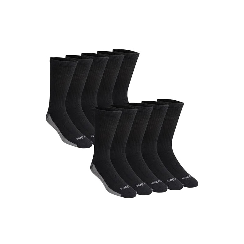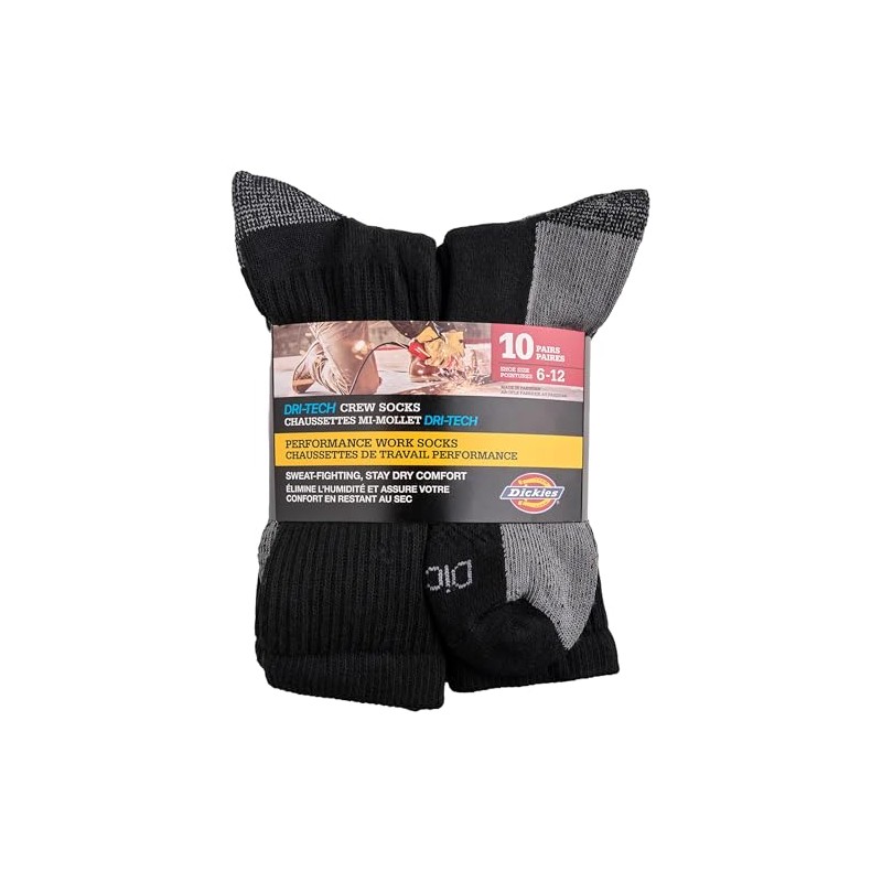 Dickies Men's 10 Pack Dri-Tech Crew Socks, Performance Work Socks, Size 6-12
